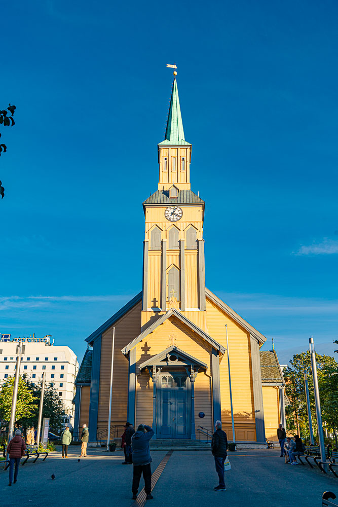 Auch in der Fußgängerzone der Innenstadt stauen sich die Massen, hier die Domkirche, aus Holz gebaut so wie fast alle (älteren) Kirchen hier in Norwegen.
