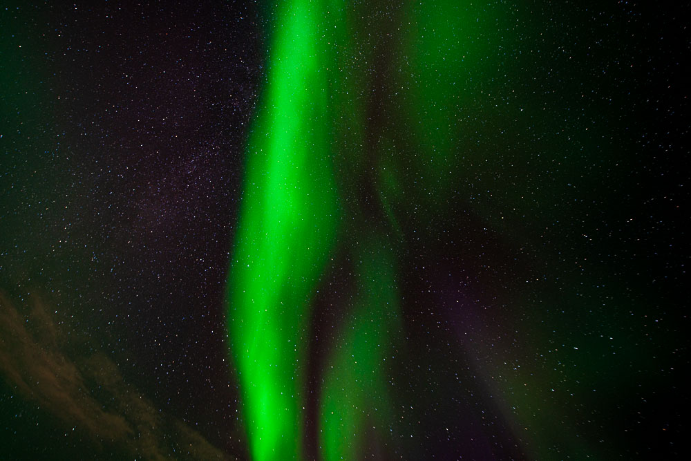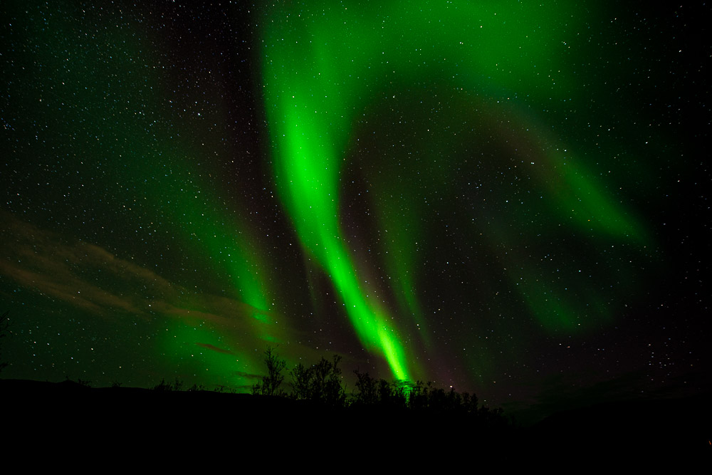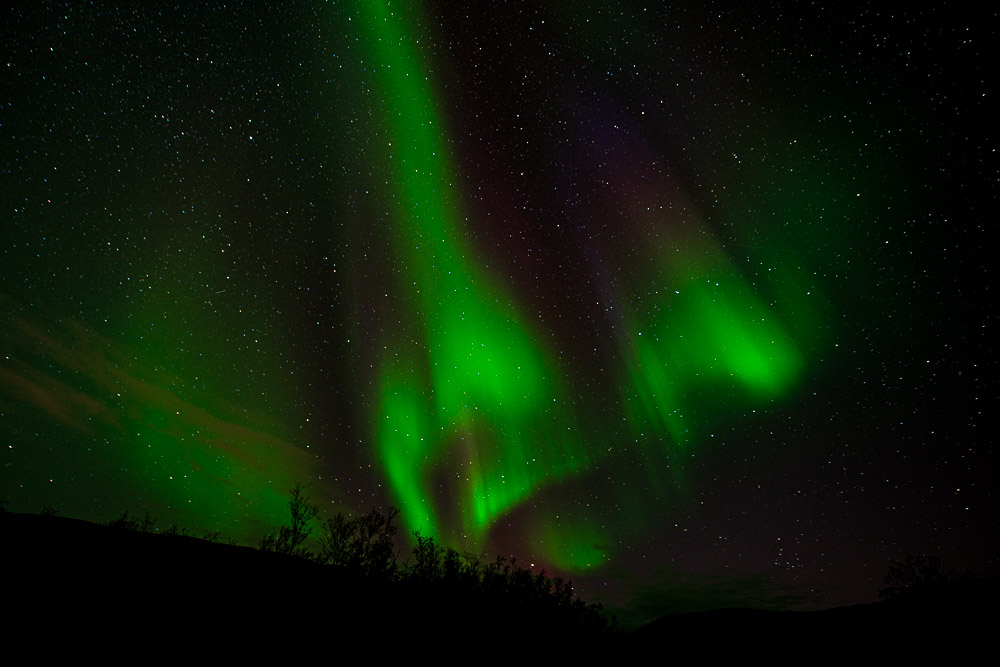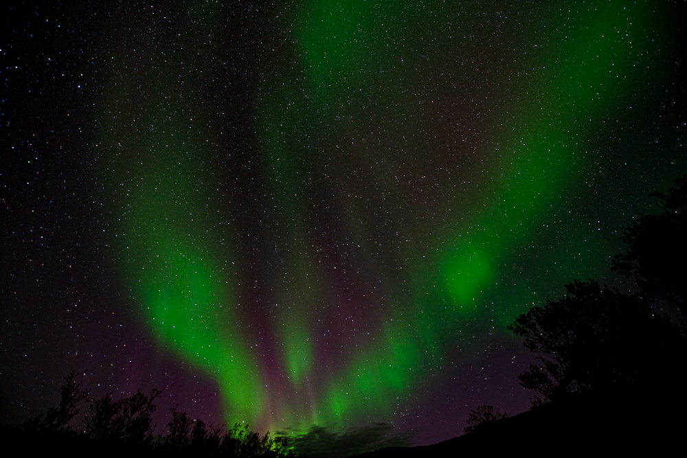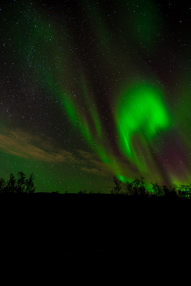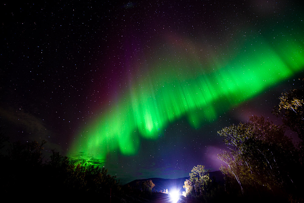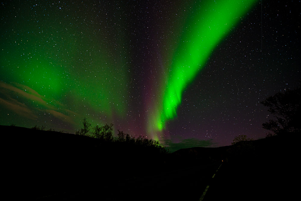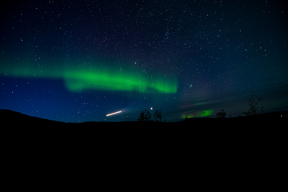 Wir werden ziemlich bald von den ersten Nordlichtern begrüßt.