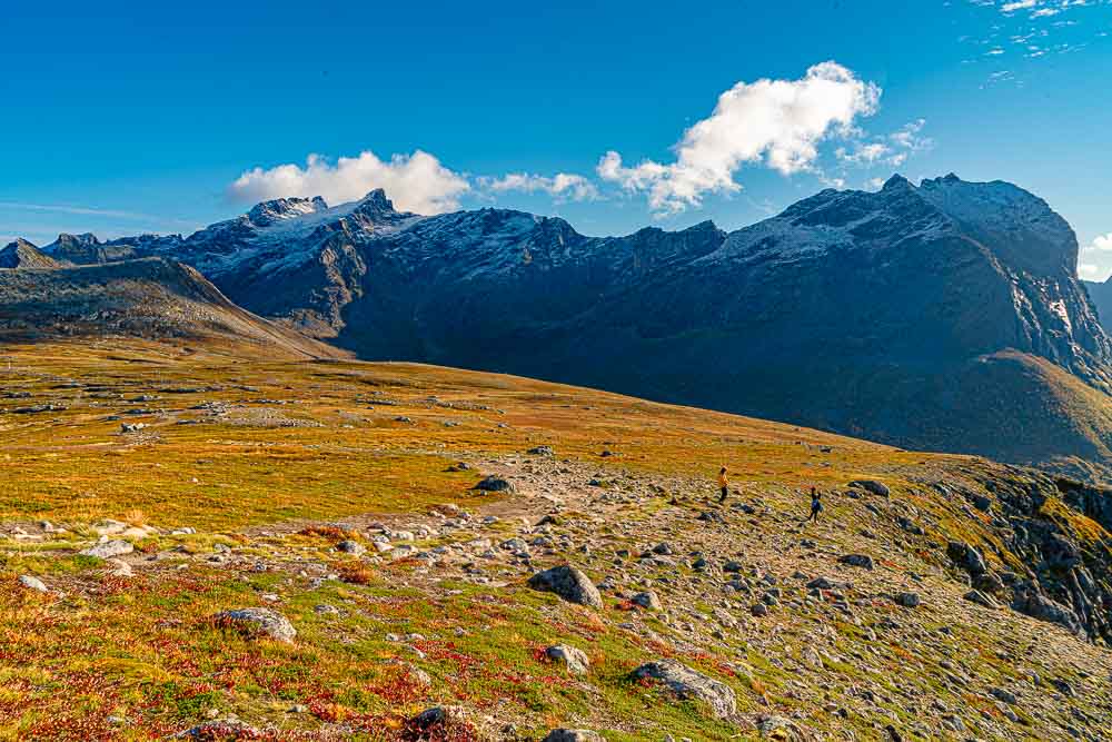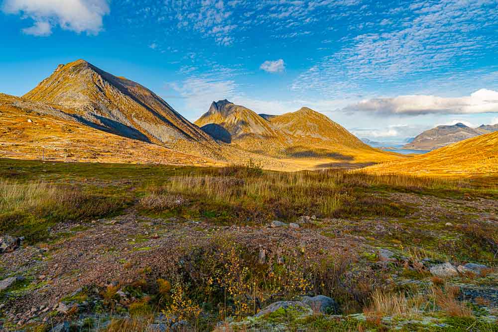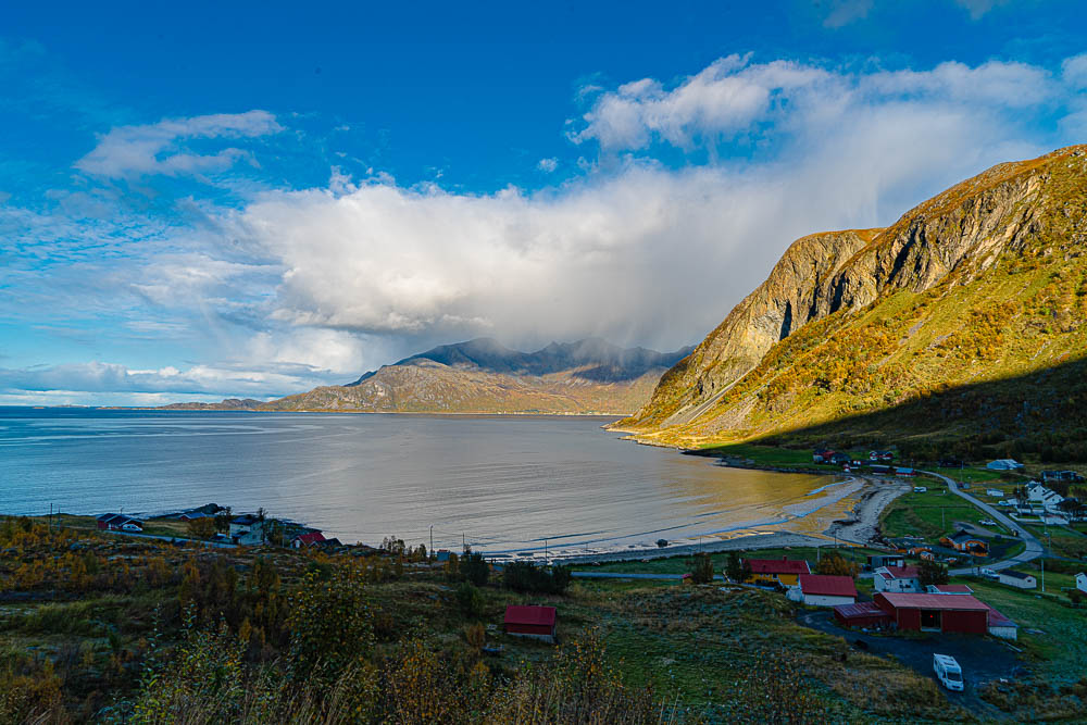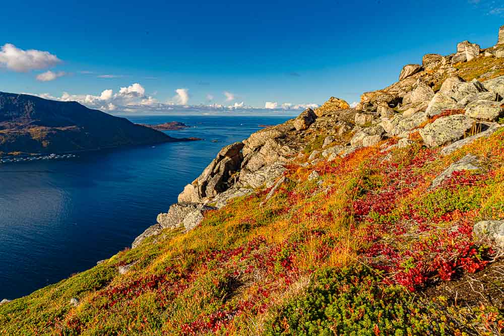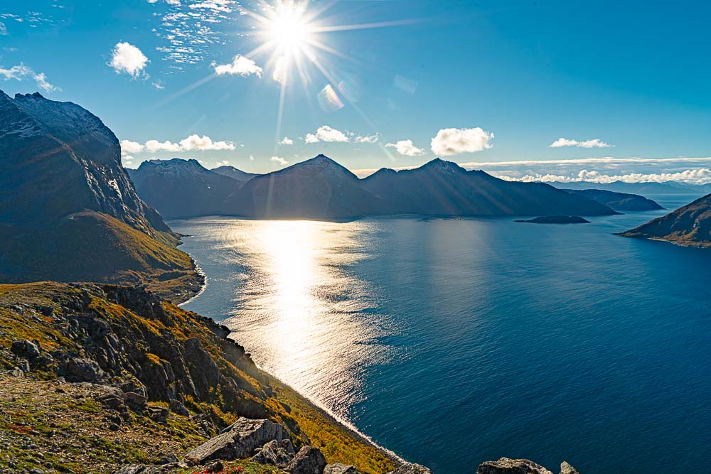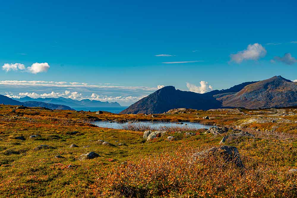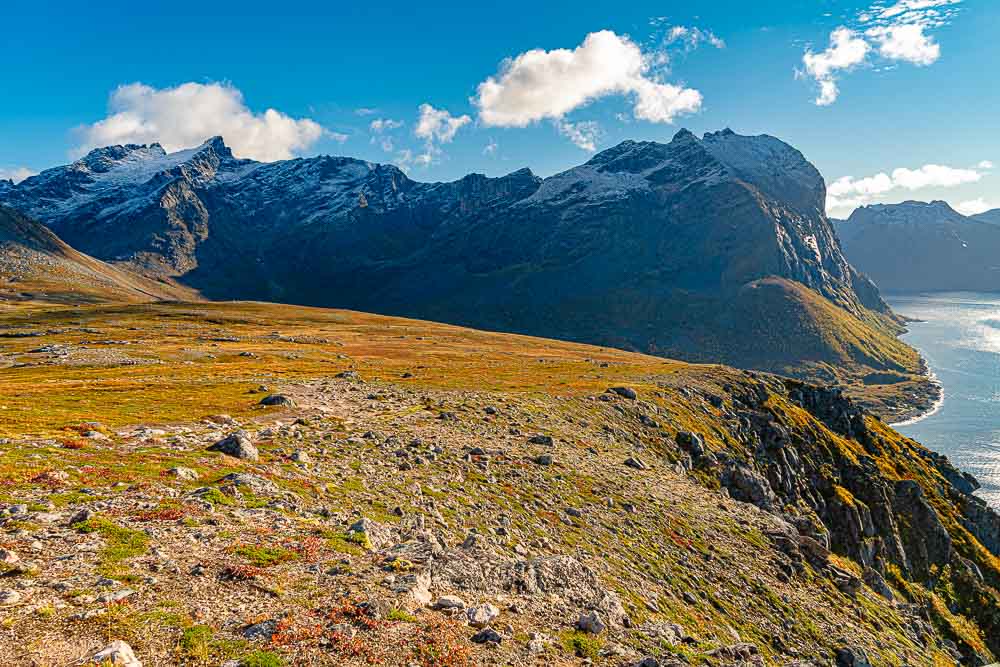 Herrliches Wetter heute, und wir brechen auf zu einer längeren Fahrt mit kleiner Bergtour im Norden der Insel Kvaløya.