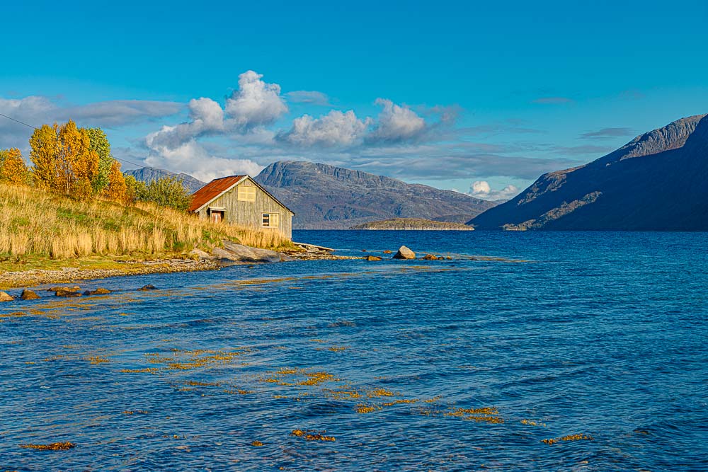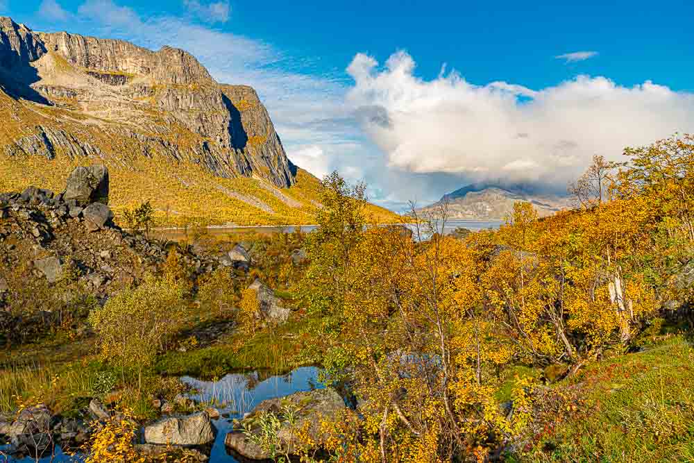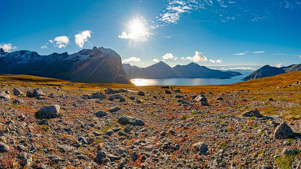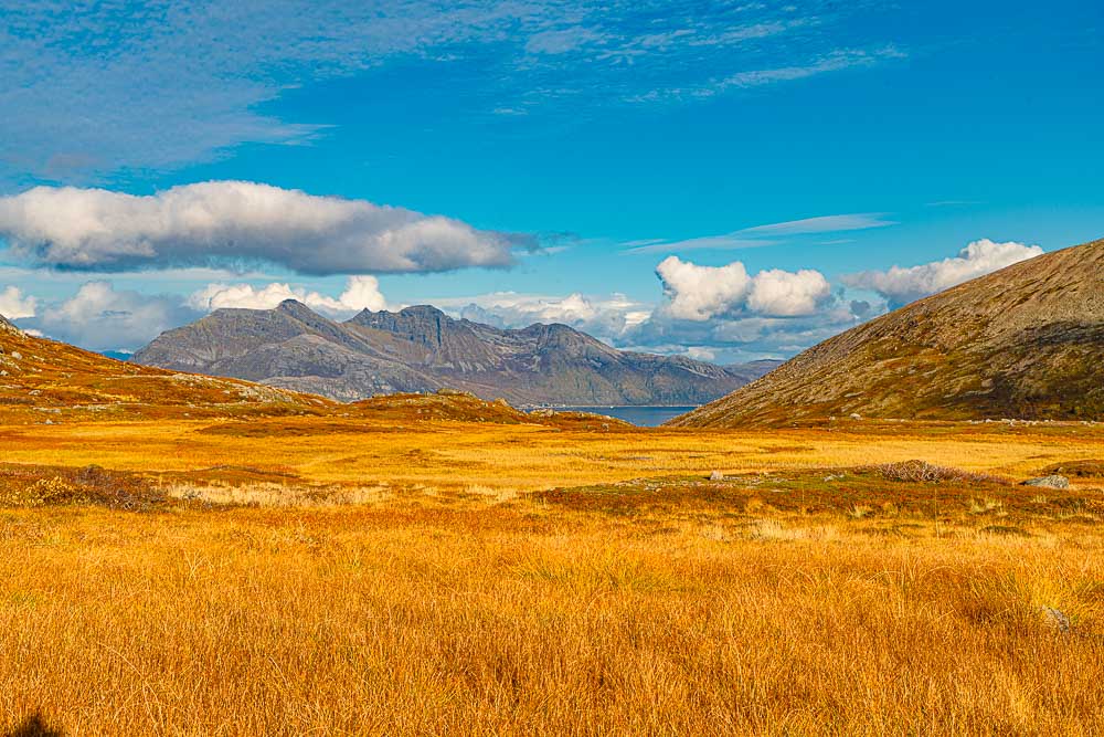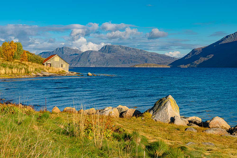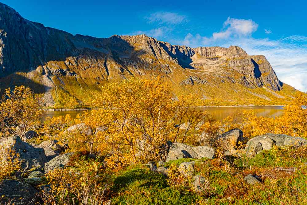 Herrliches Wetter heute, und wir brechen auf zu einer längeren Fahrt mit kleiner Bergtour im Norden der Insel Kvaløya.