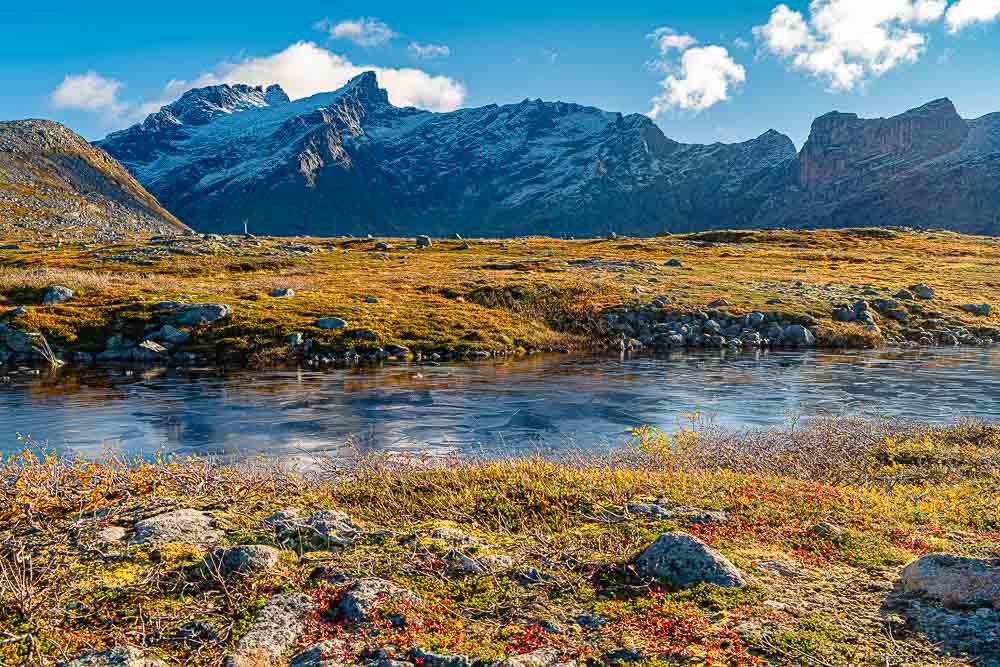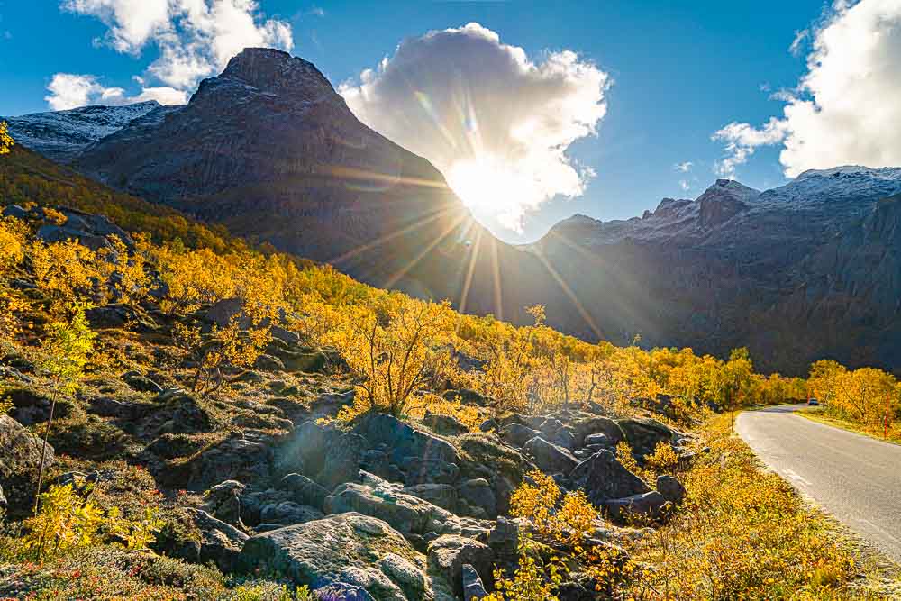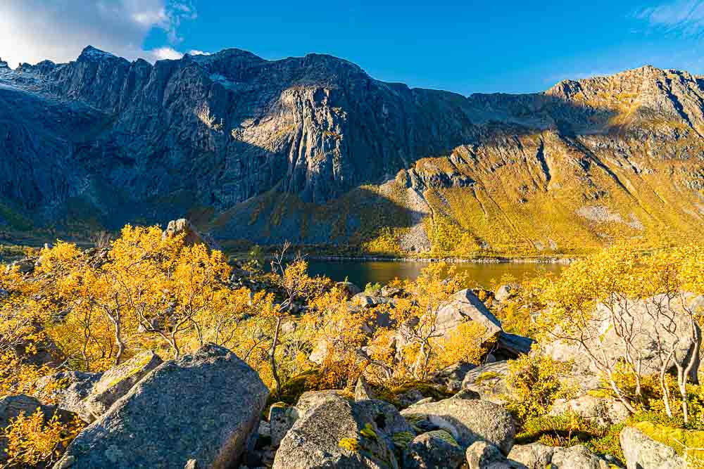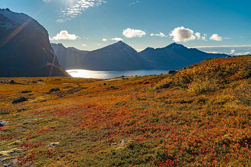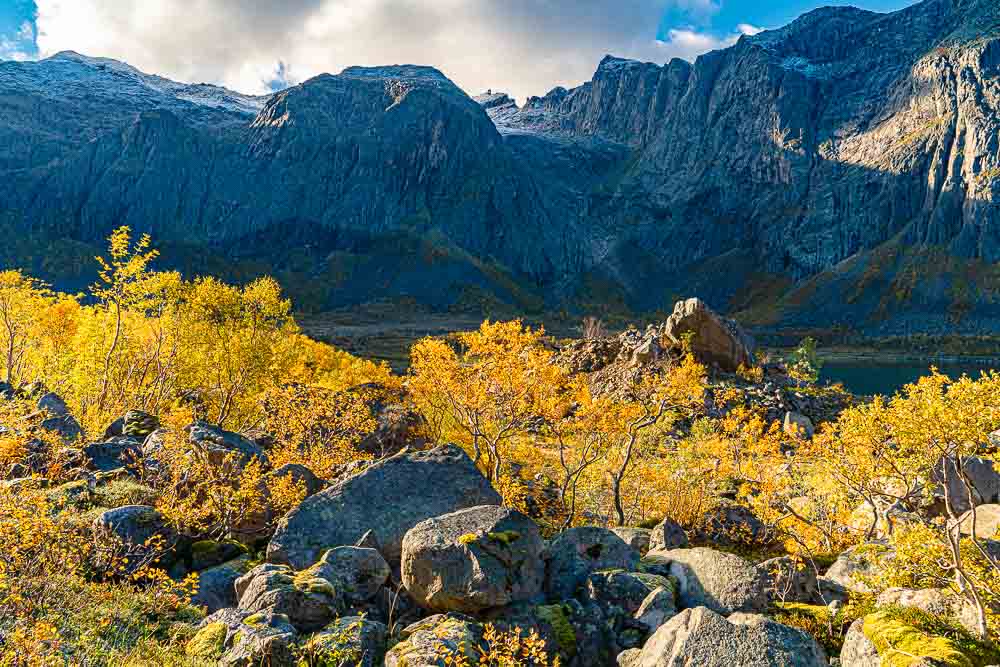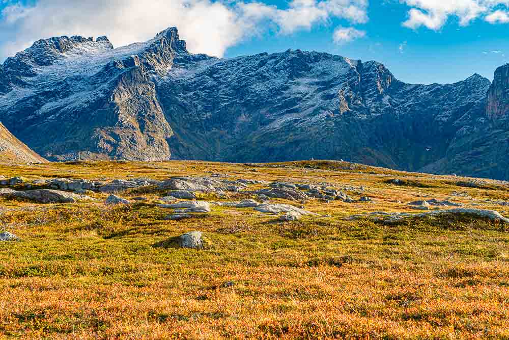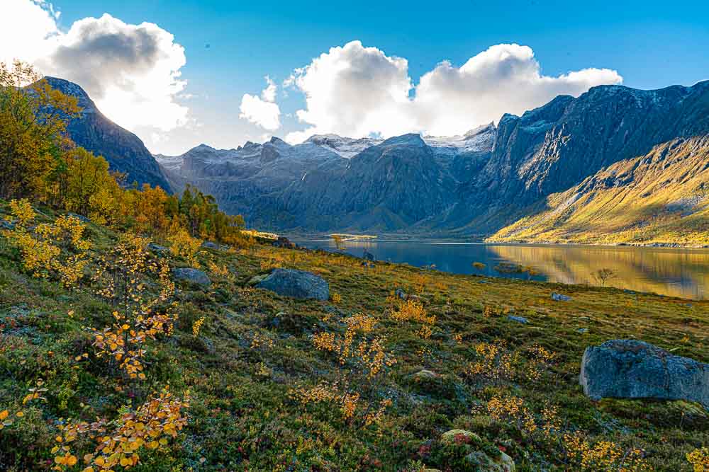 Herrliches Wetter heute, und wir brechen auf zu einer längeren Fahrt mit kleiner Bergtour im Norden der Insel Kvaløya.