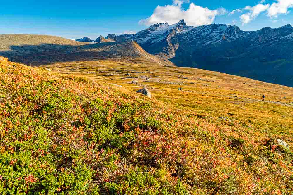 Vor uns eine nur ganz sanft ansteigende Hochfläche, über die wir jetzt auf gut sichtbarem Weg wandern.