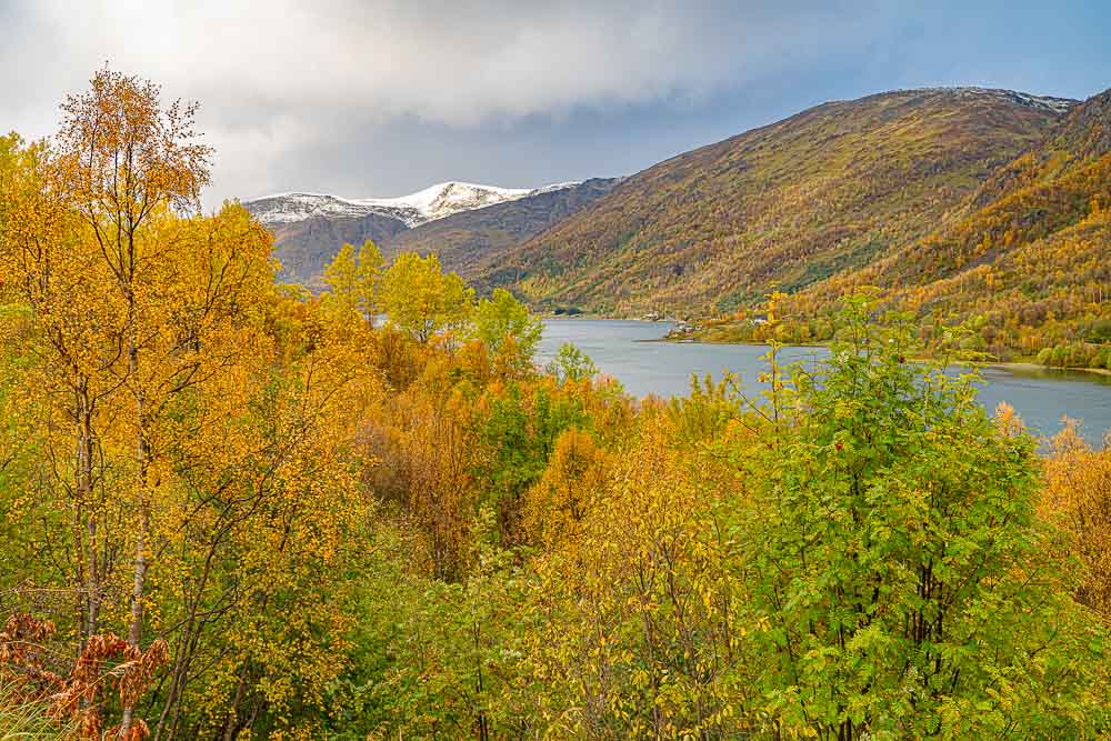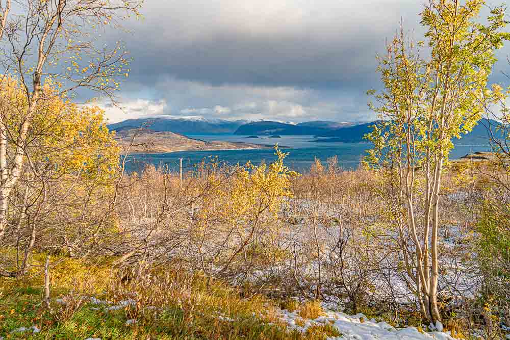 Im Süden wieder hohe schneebedeckte Berge, der höchste ist der Ruselvfjellet (1.013 m).