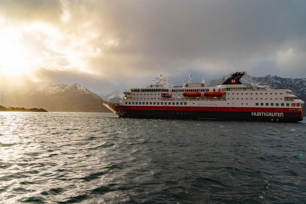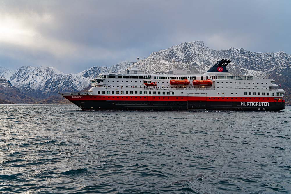 Das Hurtigruten Schiff Nordkapp, auf dem wir die nächsten drei Tage verbringen werden.