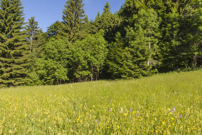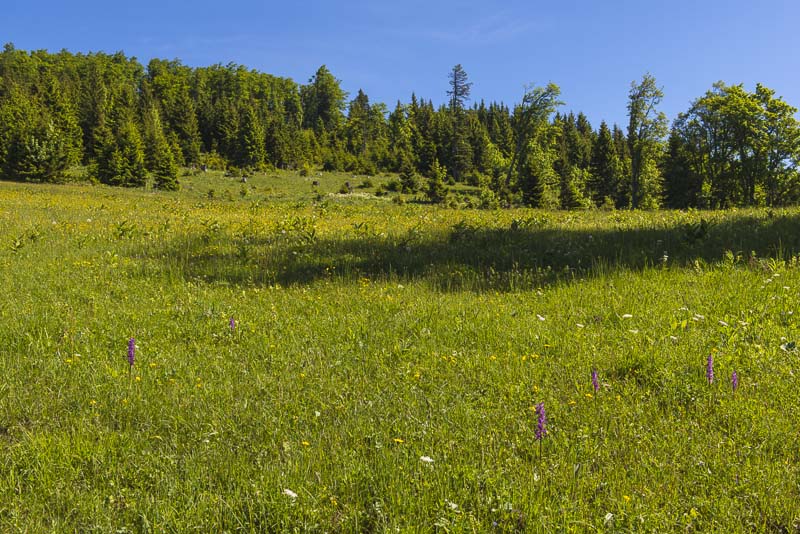 Schon auf der ersten Wiese oberhalb vom Haselecker blühen Orchideen: