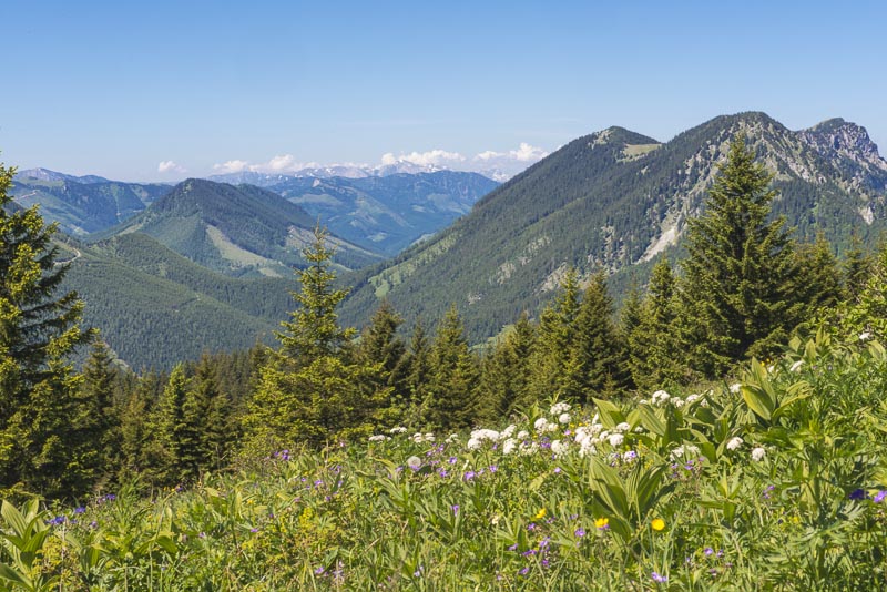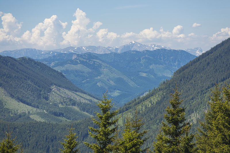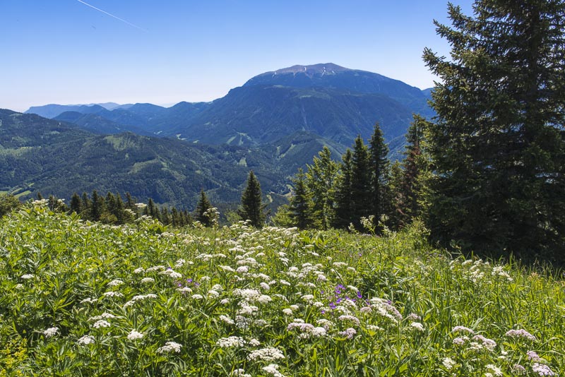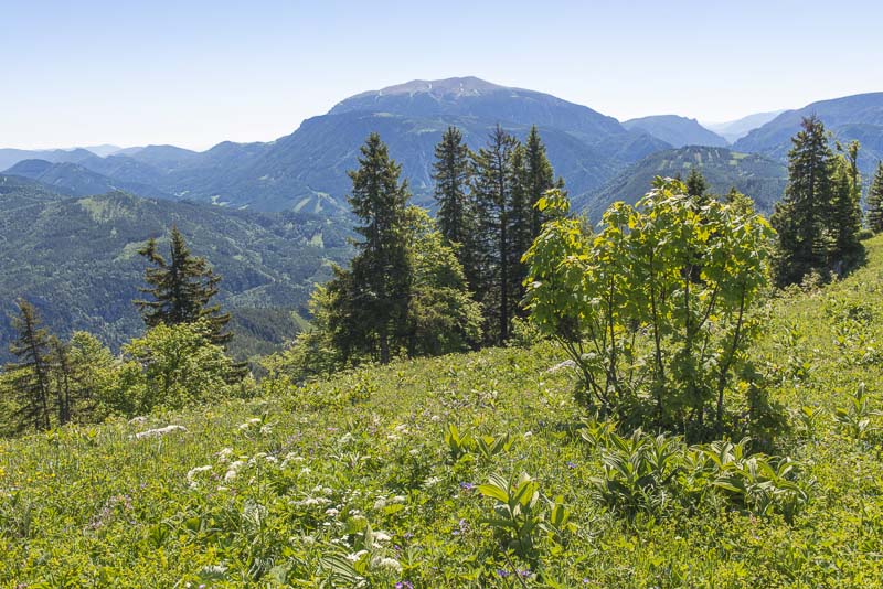 In die andere Richtung, von etwas weiter oben, geht der Blick zum Kuhschneeberg und Schneeberg.