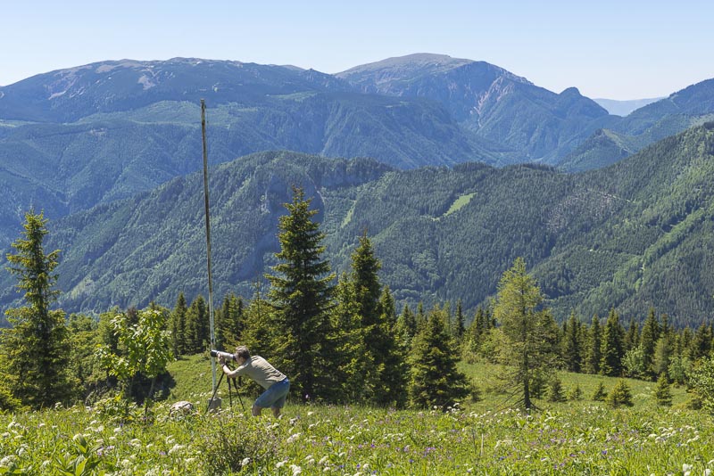 ... sowie zur Rax. Herwig will ganz genau wissen, wie der Schneeberg von dieser Seite ausschaut und hat sein Super-Tele samt Konverter und Stativ mitgenommen.
