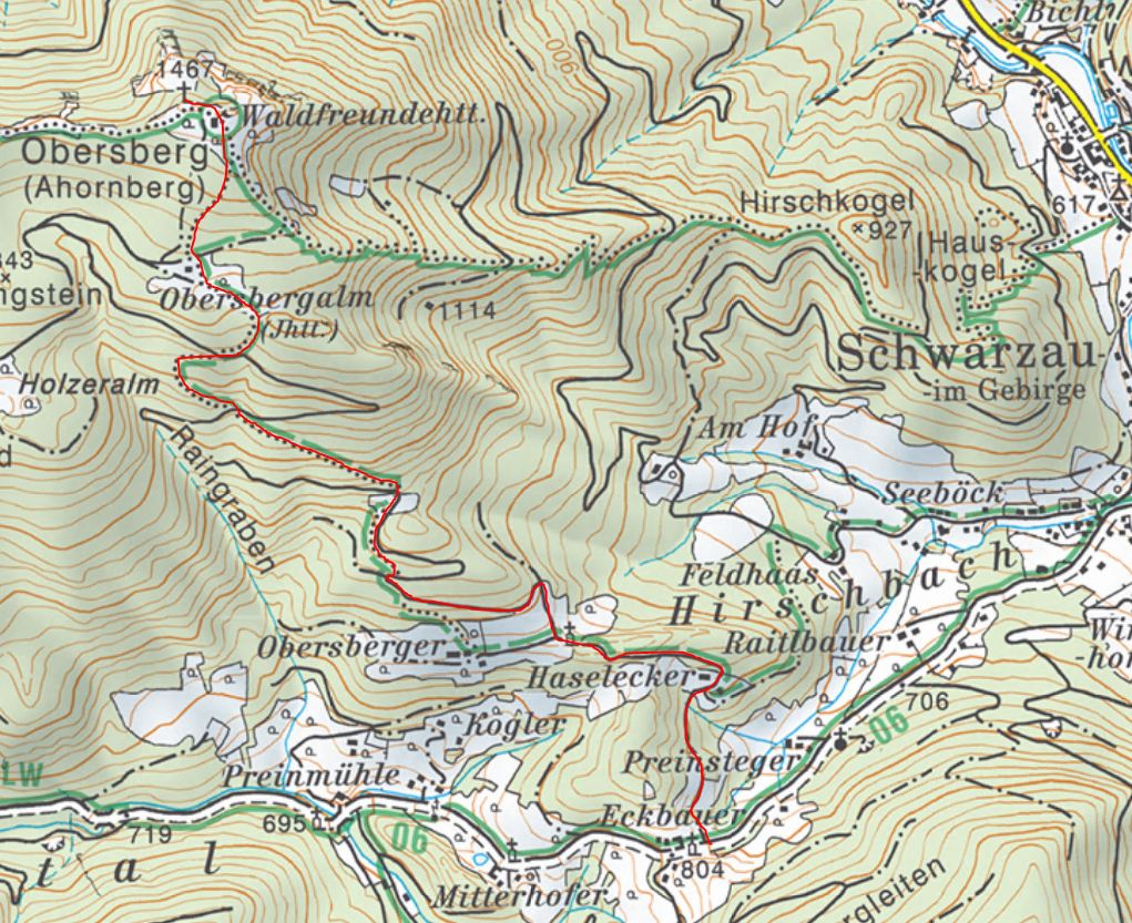 Unsere Route über die Obersberger Linden (beim Bildstock oberhalb vom Haselecker) auf die wunderschöne Obersberger Alm und weiter auf den Gipfel.