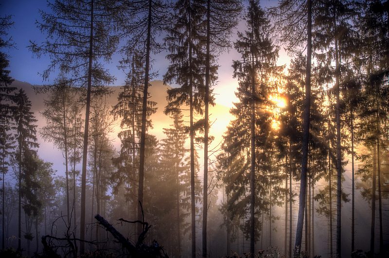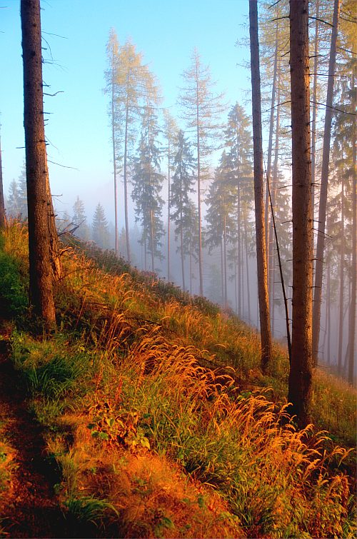 First rays of sunshine in the mist. In this situation, we need an hour for half an hour´s distance because we try to catch into pictures this unique situation ...