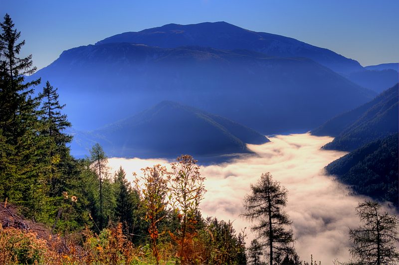 Now we look down over the valley where Schwarzau is hidden in the mist.