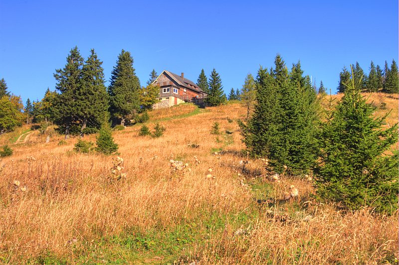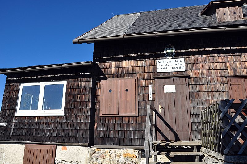 Waldfreundehuette. The plate on the door says, that the renters are contractually obliged to keep the hut closed between mid September and mid Oktober. Completely incredible regarding today´s weather and only explainable by the extreme egoism of a certain lobby of this country.