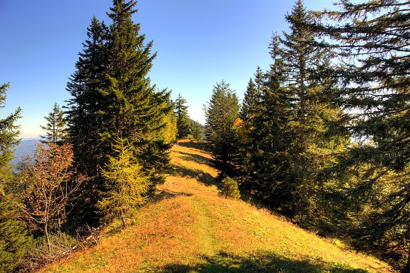 We now have reached the ridge-region, the summti is quite close. Smooth mountain pasture grassland, with the view to Schneeberg Kuhschneeberg in front of it. If you draw a line from here to Schneeberg and continue that line on the other side, you approximately get to Winzendorf, my home village.