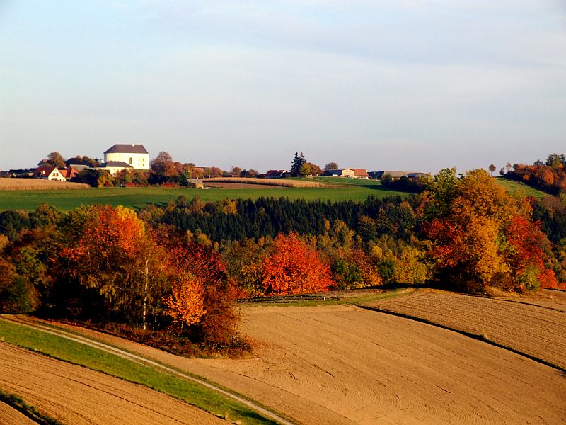 Götzendorf, auf einem Hügel gelegen. Am Ziel