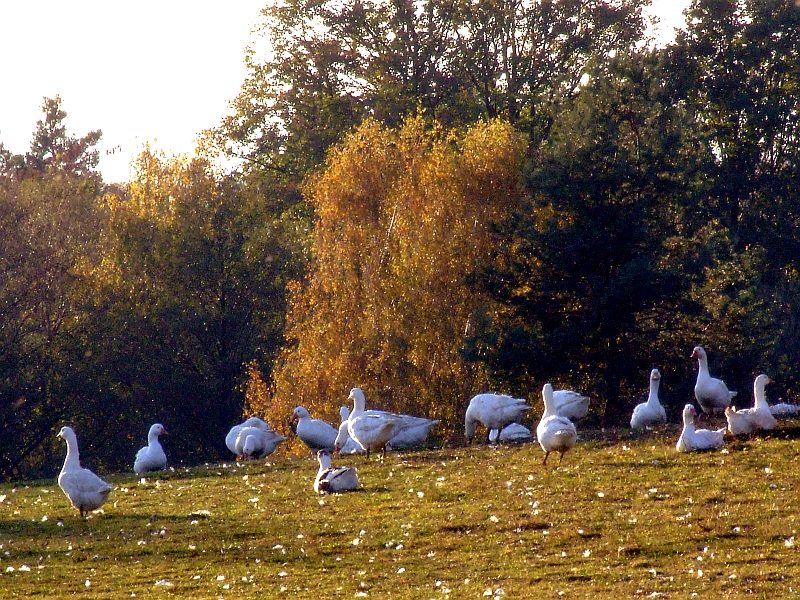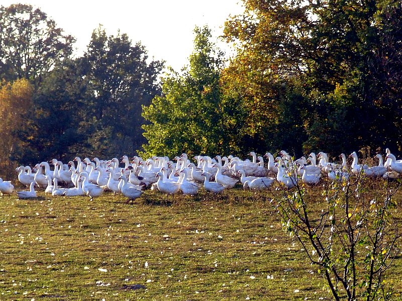 Am Nachmittag wähle ich wieder eine andere Route. Diesmal fahre ich den Radweg von Oberwart nach Riedlingsdorf und danach zur Sixtina und nach Wiesfleck. Von dort wähle ich die äußerst steile Route nach Sparberegg (740 m) und weiter nach Götzendorf. Unterwegs knapp hinter Wiesfleck eine Gänsefarm.