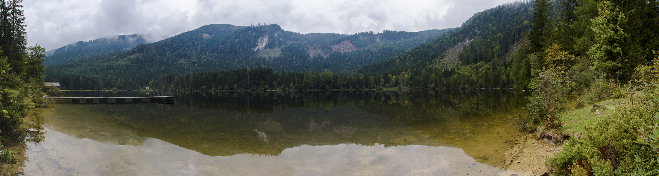Panoramabild des Ödensees mit den östlichen Ausläufern des Dachsteinmassivs im Hintergrund.
