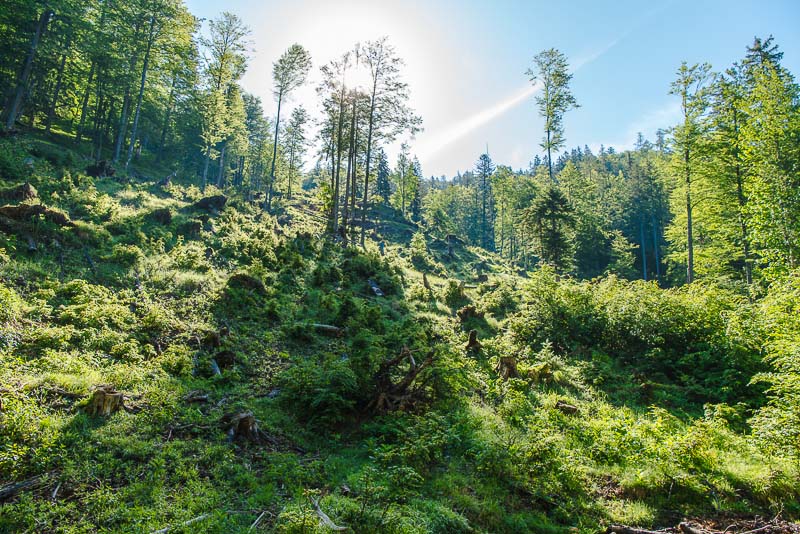 Wonderful morning light still earlier than 8 a.m. in the Höllertal gorge.