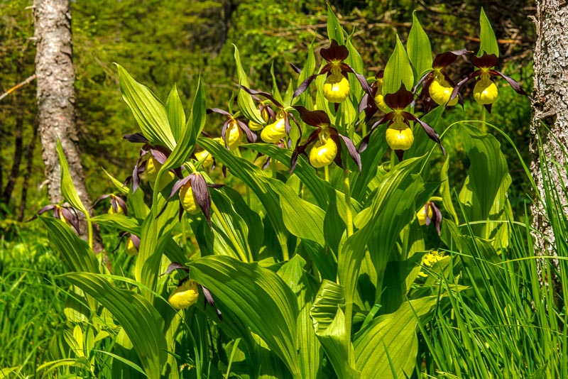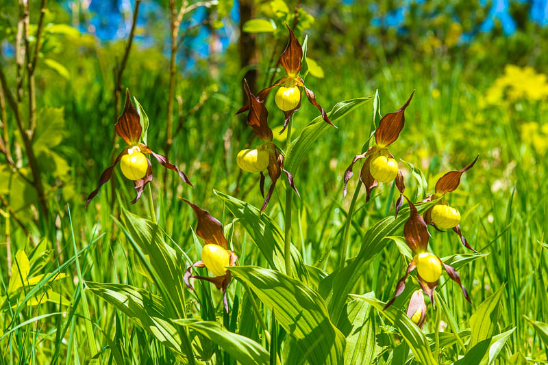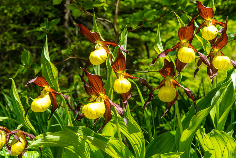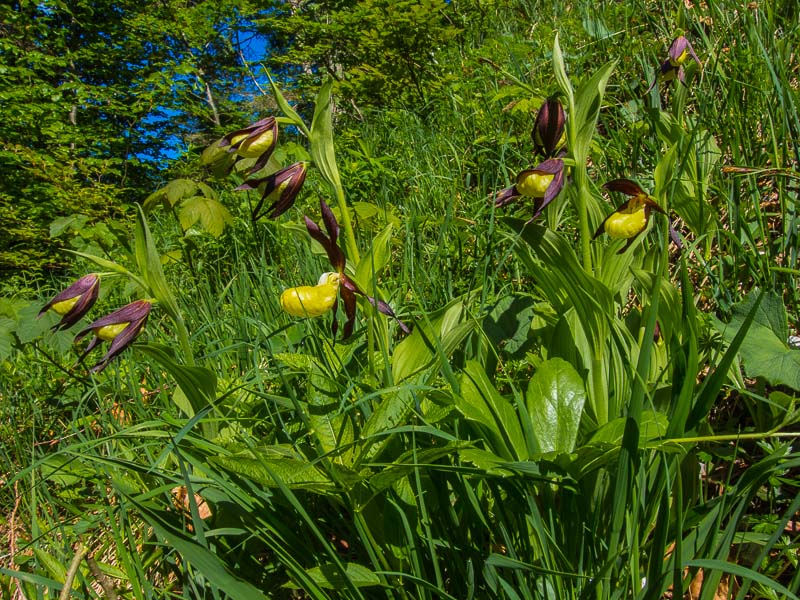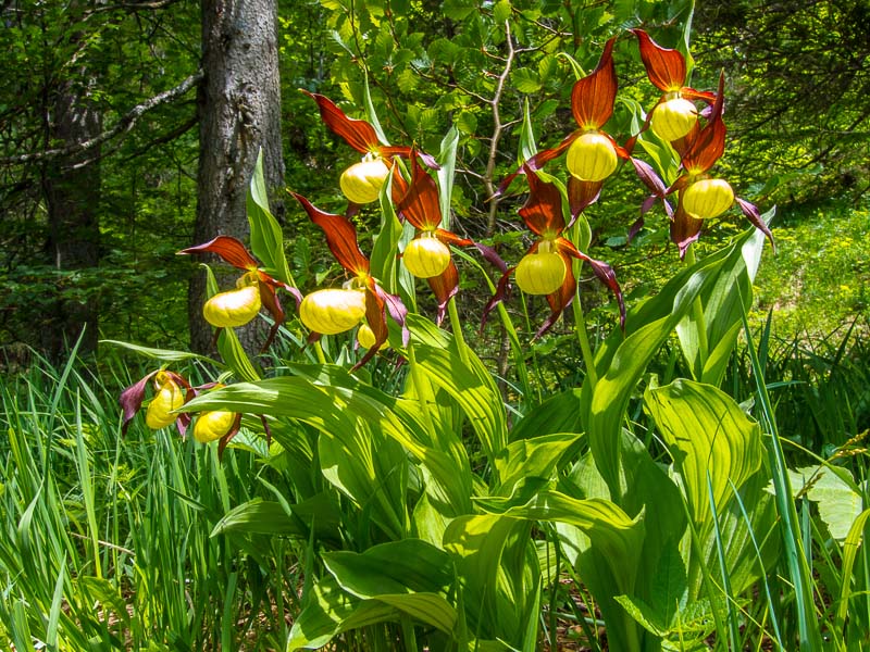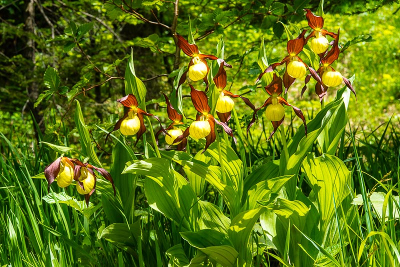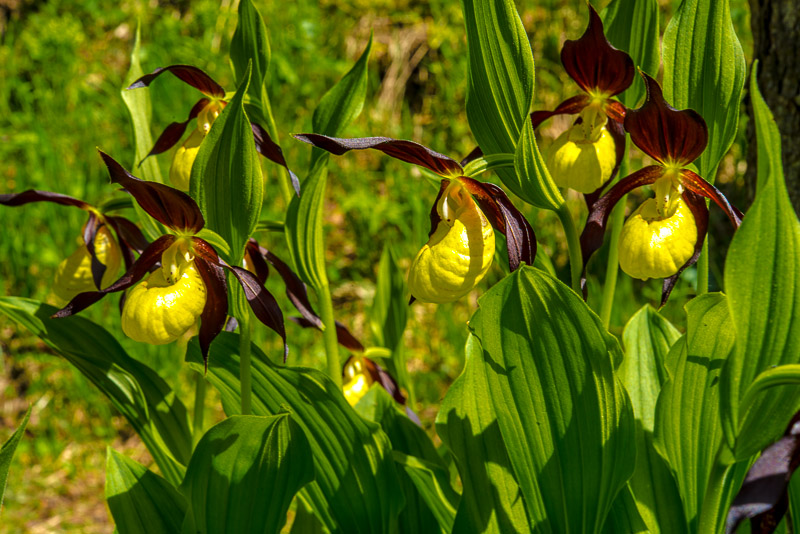 Lady´s slipper orchids (Cypropedium calceolus) in abundance, partly closed still.