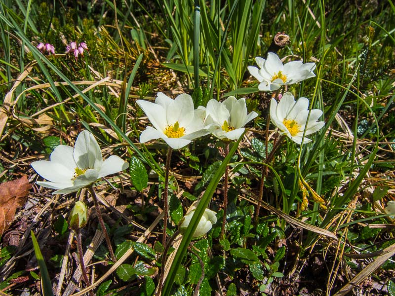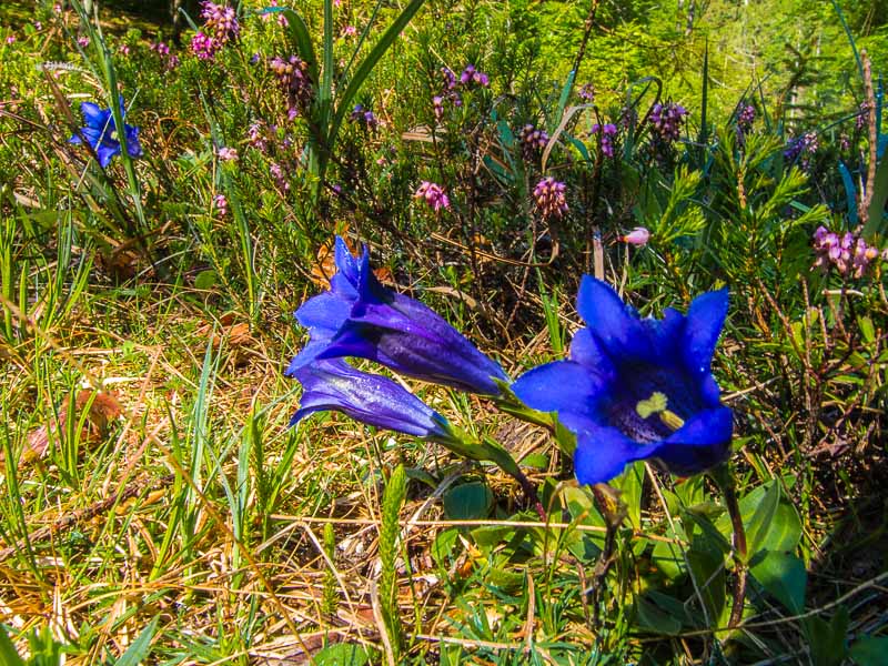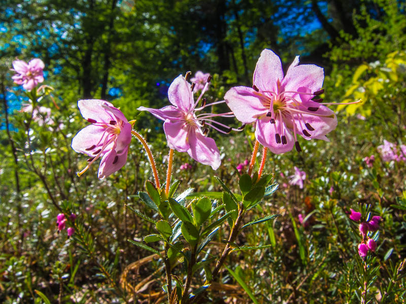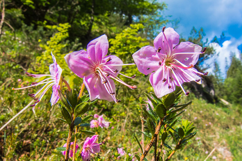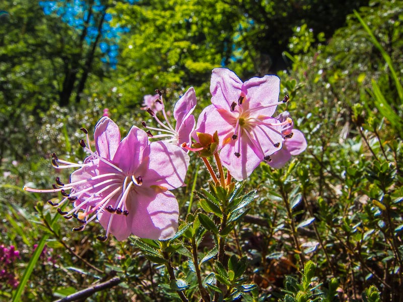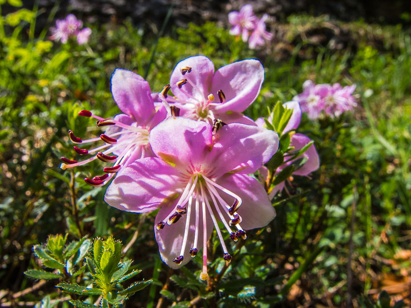 On the opposite northern side, which is in shadow most of the day, lots of Zwergalpenrosen (Rhodothamnus chamaecistus)