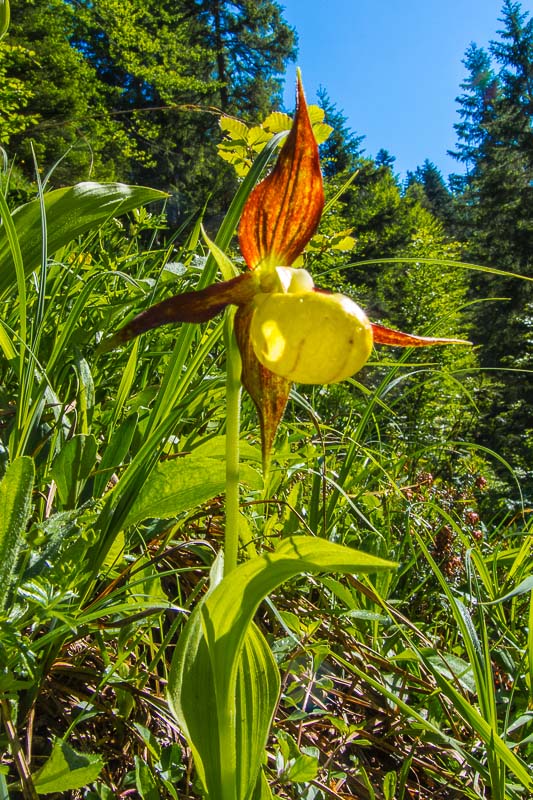 Lady´s slipper orchid (Cypropedium calceolus) on the steep southern slope - fully blown up here.