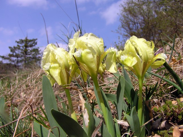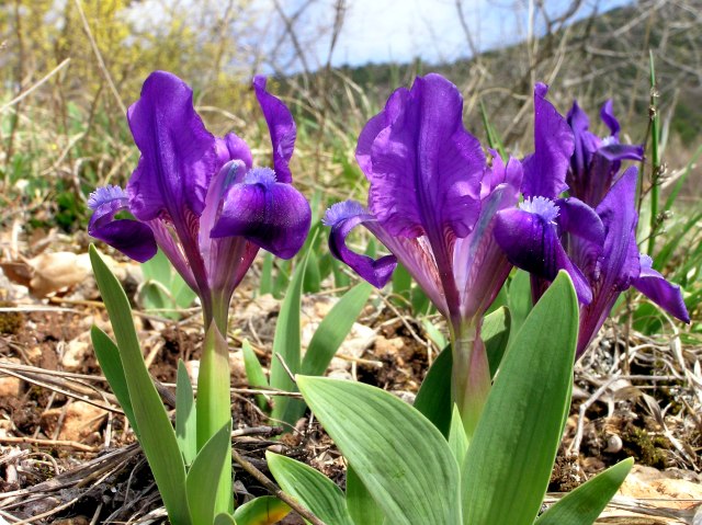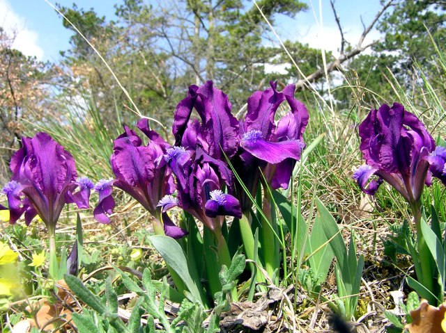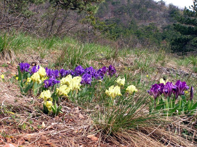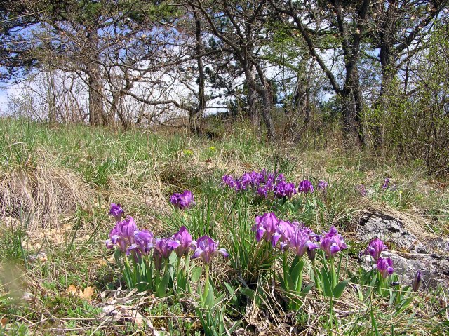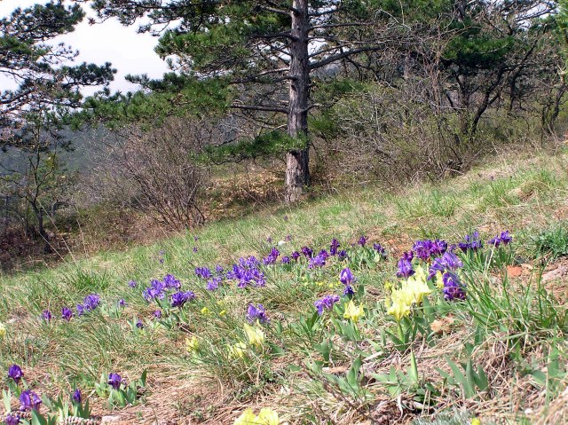 On a dry grassland in the vicitniiy carpets of Tiny Iris (Iris pumila) in different colours.