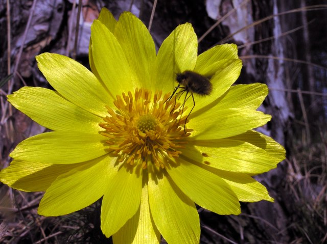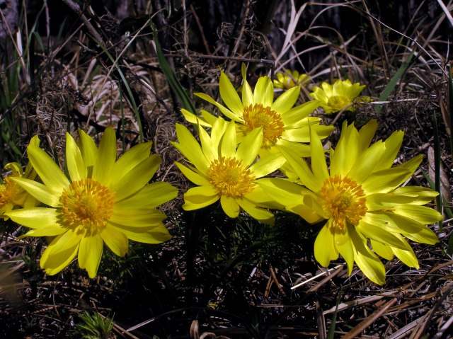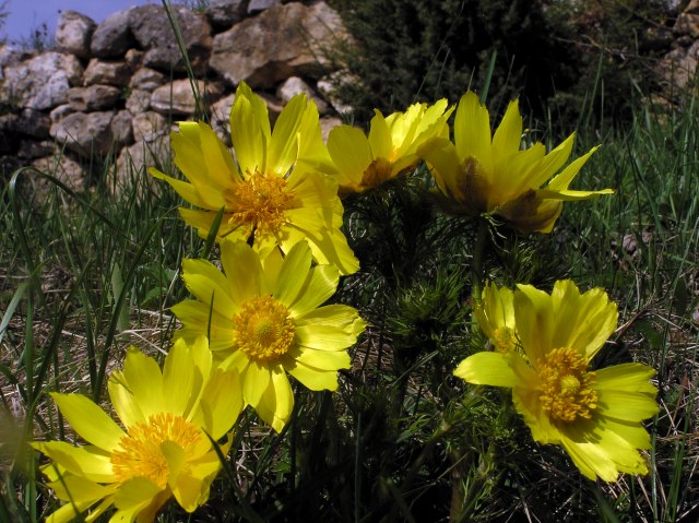 On the way back: near a stone wall Adonis in great clusters.