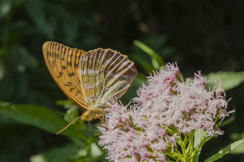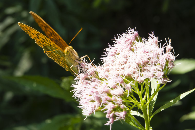 Männlicher Kaisermantel - Schmetterling auf eine Baldrianblüte nahe dem Bach.