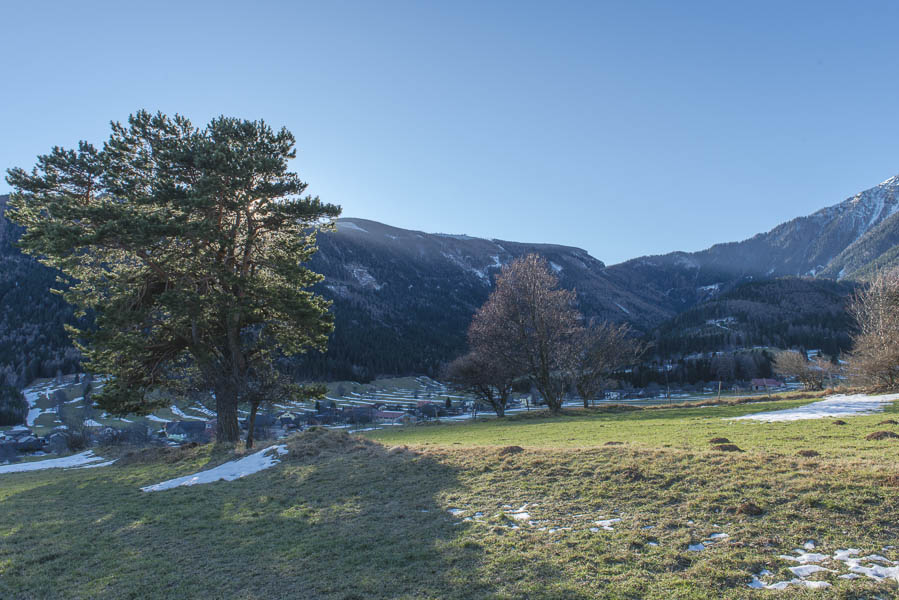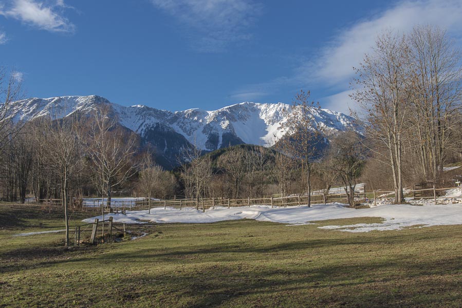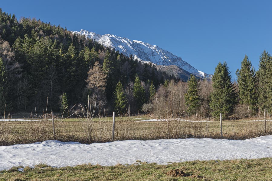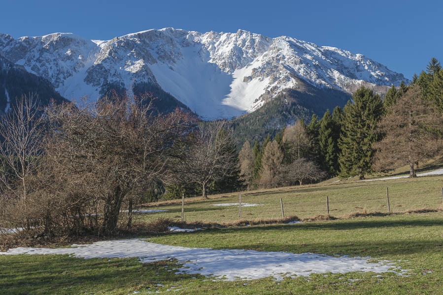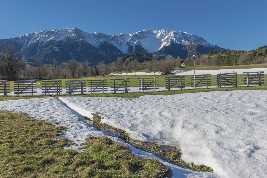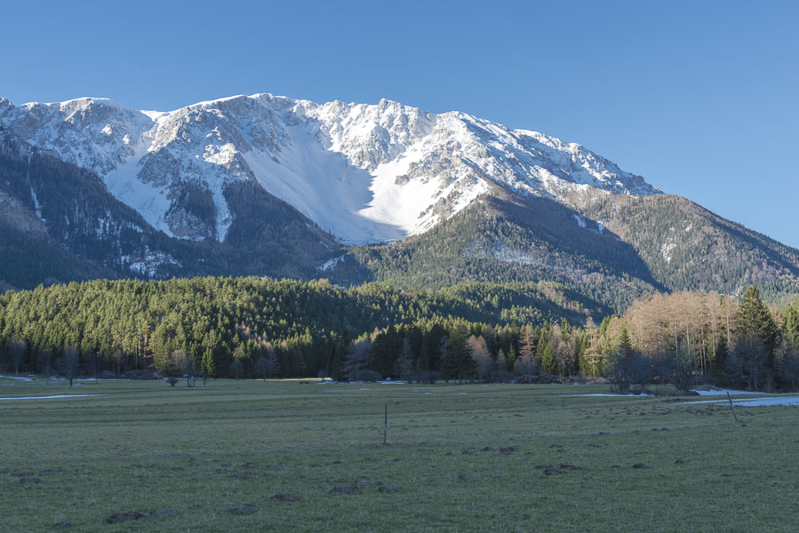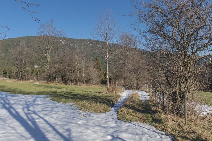 At the upper end of the small forest area. Slowly, the areas around Schneebergdörfl escape the shadow of Hoher Hengst.