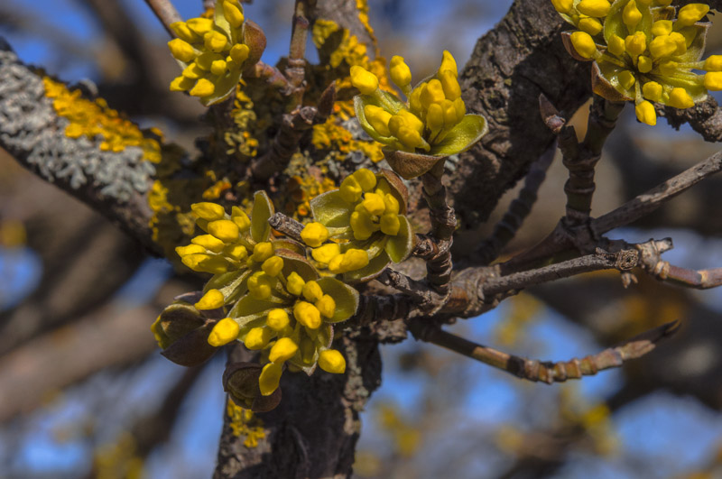 ... aber beim genauen Hinsehen ist er schon mit Blütenknospen übersät - und das im Februar auf 700 m Seehöhe!