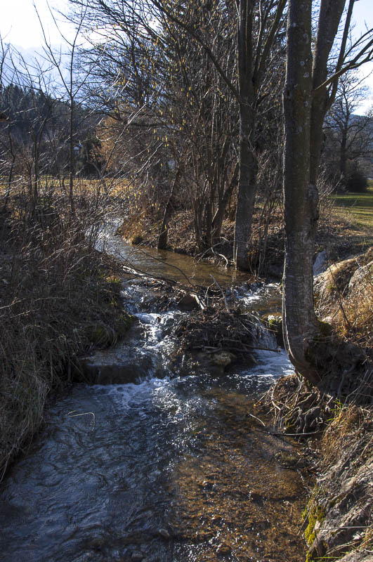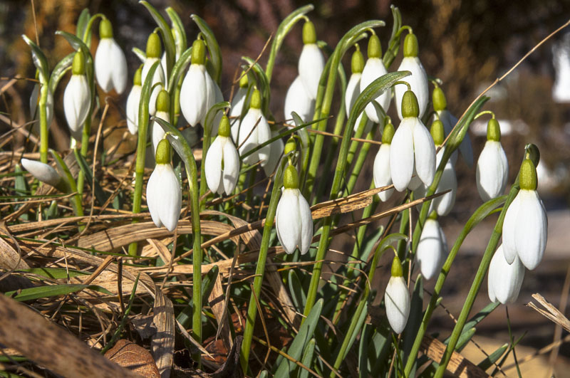 Neben dem Sebastianbach bei Sonnleiten blühen erste Schneeglöckchen.
