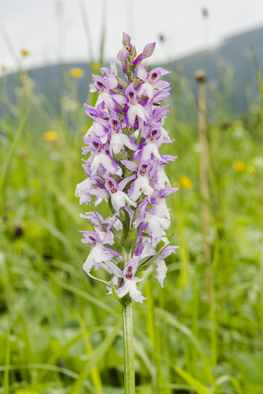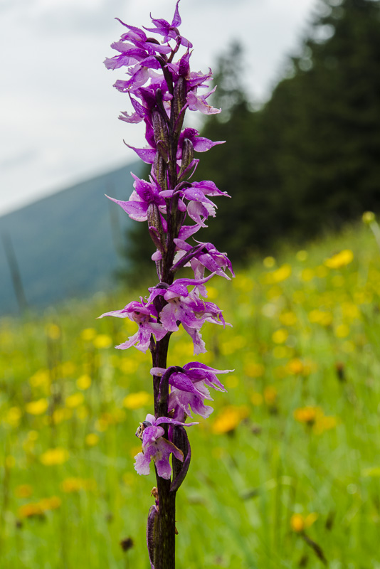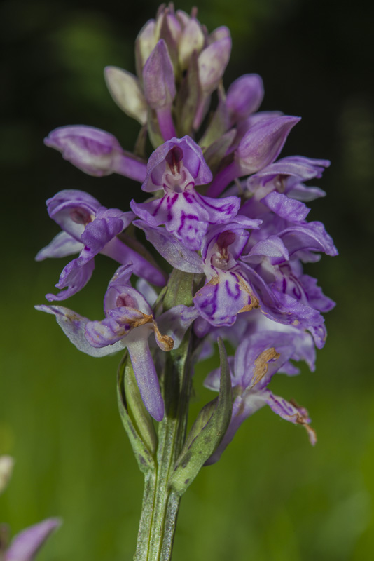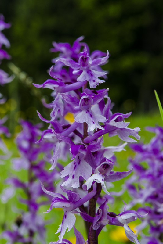 Noch einmal, am Oberrand der Wiese, ein Fleck mit einigen Dutzend Stattlicher Knabenkräuter (Orchis mascula subspecies signifera)