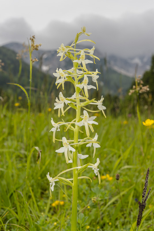 Vereinzelt auf der Wiese auch Zweiblättrige Waldhyazinthen (Platantera bifolia)