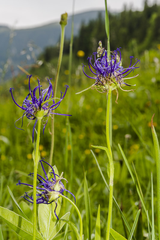 Auf der Böschung neben dem Weg - im Bild oben ganz rechts - wächst das Kugelknabenkraut (Traunsteinera globosa)