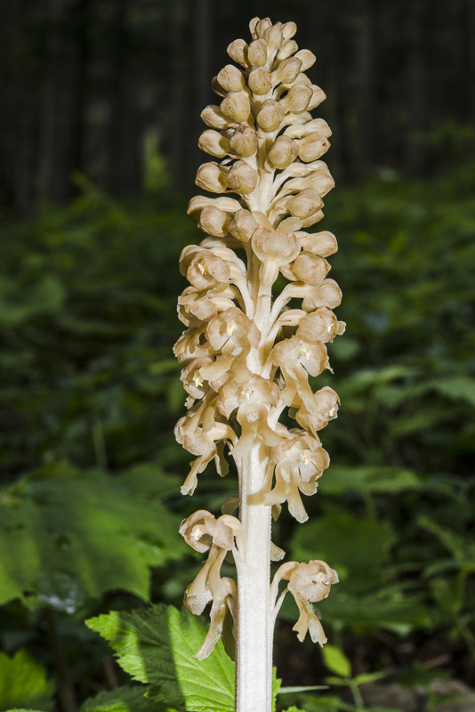 Im Wald die Vogelnestwurz (Neottia nidus-avis), eine parasitische Orchideenart.