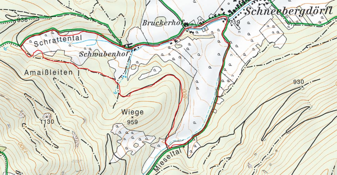 ... von dort wieder ins Schneebergdörfel zurückzugehen.