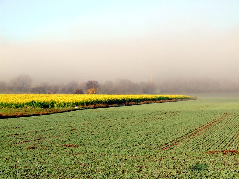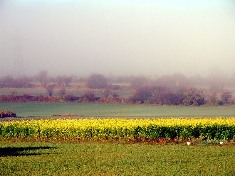 Über Winzendorf liegt dichter Bodennebel. Kurz vor Neunkirchen ist der Nebel auf einmal zu Ende.