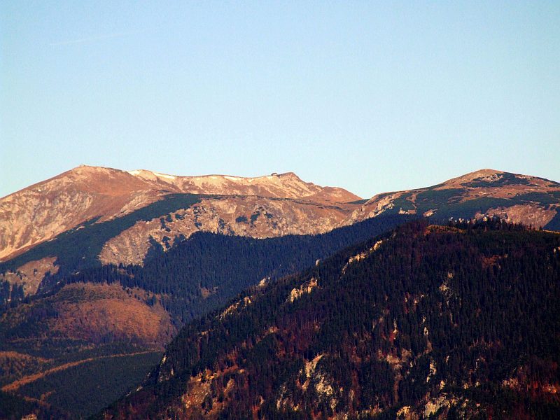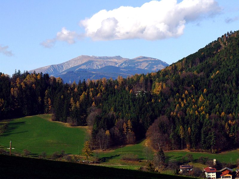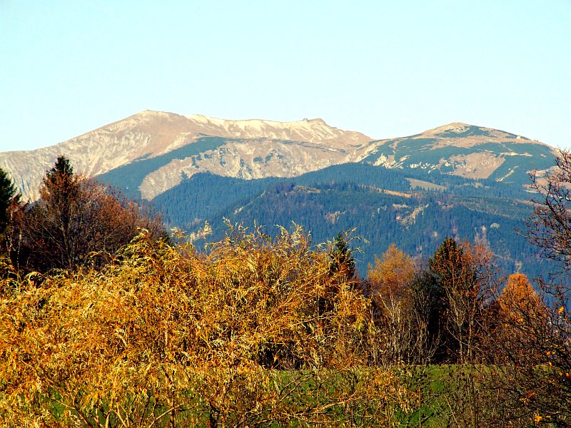 Die Rax mit ihrem langgestrecktem Plateau, ganz links die höchste Erhebung, die Heukuppe.