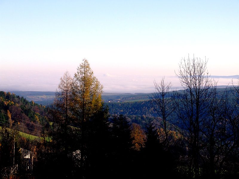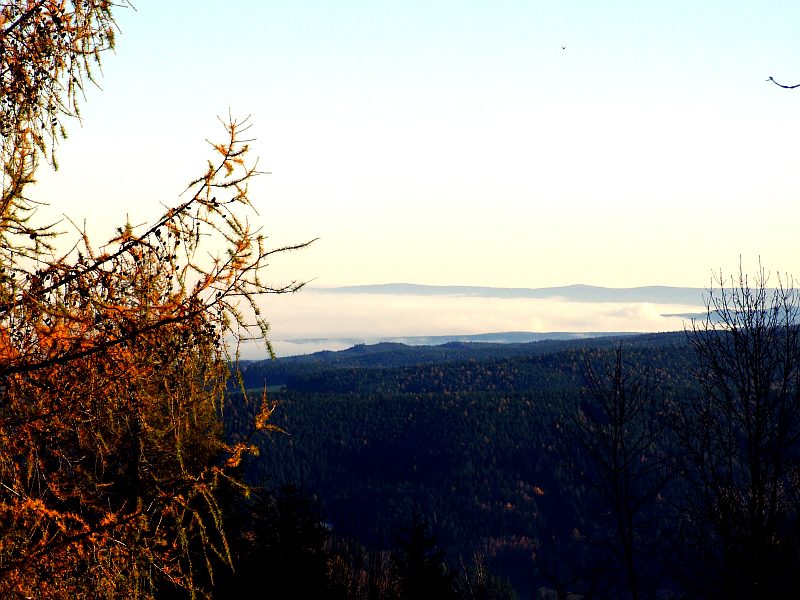 Ich nutze die Mittagspause zu einem kleinen Ausflug zum benachbarten Ramssattel. Unterwegs der Blick über das Nebelmeer, das sich ganz stark ausgebreitet hat und jetzt auch schon viel höher hinaufreicht. Um 16 Uhr bei der Heimfahrt ist dann auch Raach schon in Nebel gehüllt.