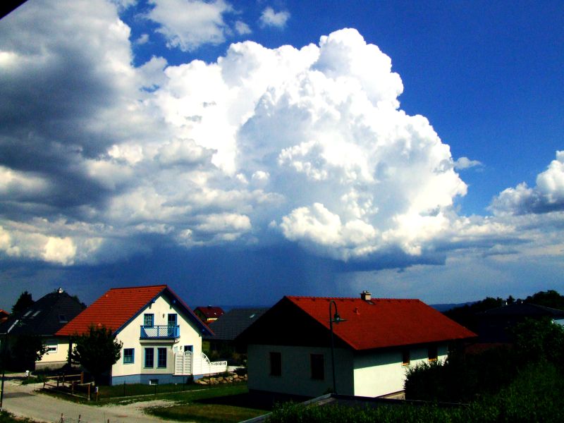 Tags zuvor am 19.6.: nachmittags hängt eine bedrohliche Gewitterwolke über dem Rosaliengebirge. Sie erreicht uns aber nicht.