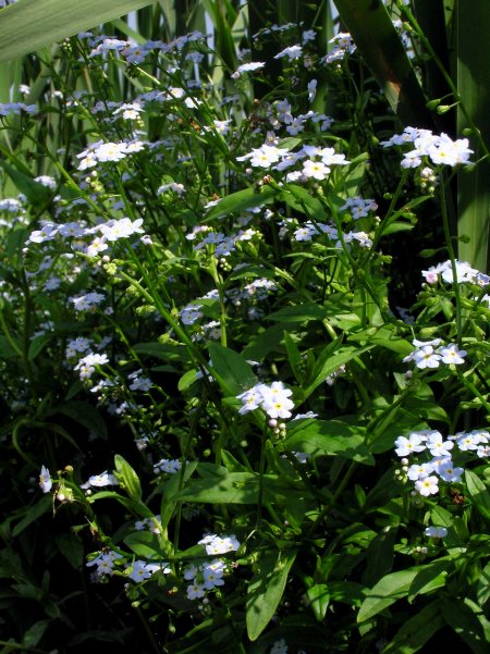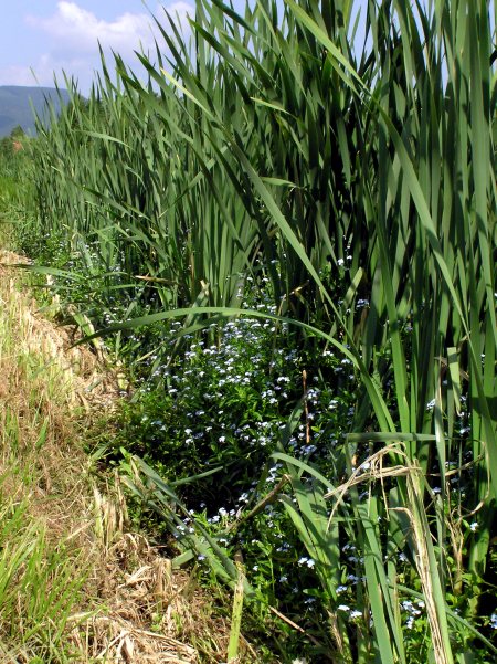Forget-me-not (bog variant - Myosotis scorpioides) in between reed in a runnel besides the road shortly before Dreistetten