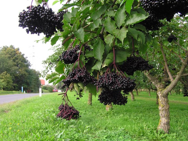 Elder plantation near Stinatz. The already older plants are drawn like trees by cutting every year.