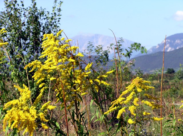 On the dry grass behind Bad Fischau in some places lots of Goldschopfaster ("Golden tufted aster", Aster linosyris), a typical plant of the Pannonian flora.