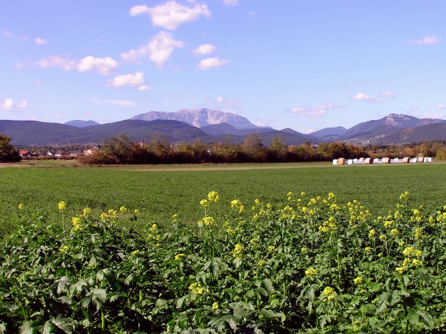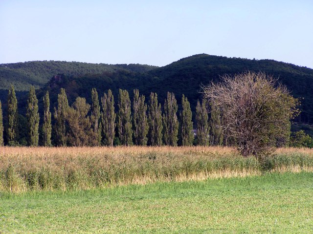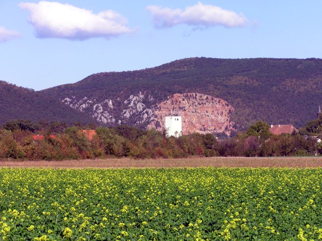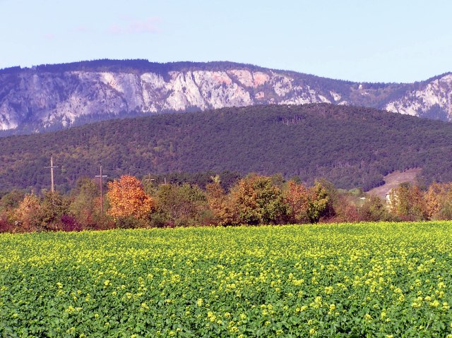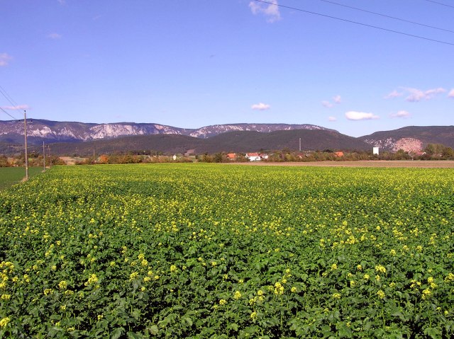 Bei Willendorf, Blick zu den Fischauer Vorbergen (ganz links der Kienberg, 650 m)