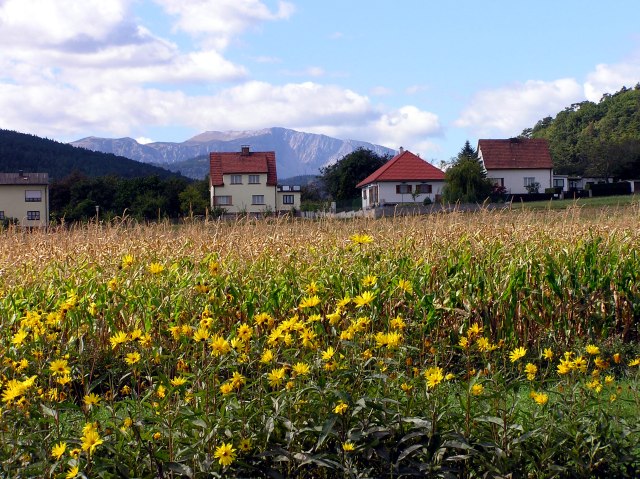 Schneeberg, Häuser von Willendorf im Vordergrund.