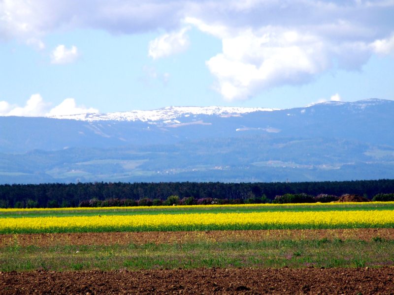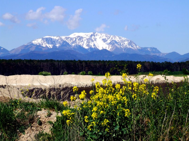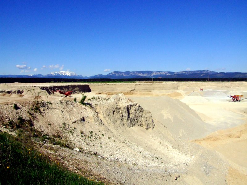 ... hier gibt es riesige Schottergruben, denn das ebene Land besteht hier großteils aus Schotter, der in früheren Jahrmillionen von den Bergen herabgeschwemmt wurde.