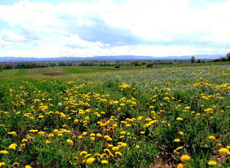 Löwenzahnwiesen (hier knapp vor Winzendorf) werden immer schöner.