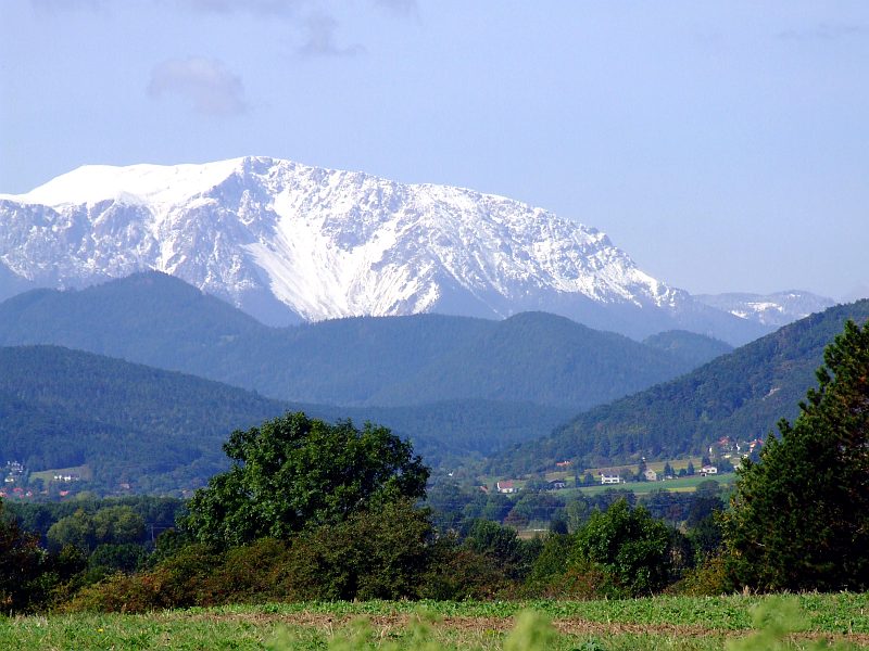 Panoramic view with Schneeberg and Hohe Wand, Fischau mountains in front - click into the picture for a larger version.