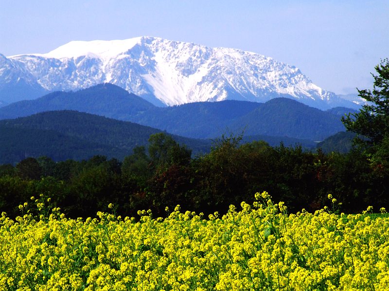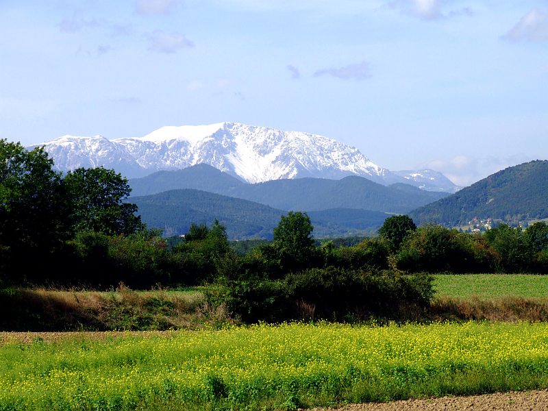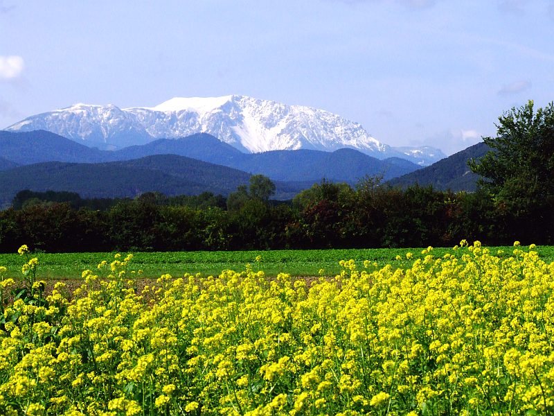 Today I just have left one short free hour. So I decide for a short ride with the mountain bike on gravel roads over fields nearby. After the recent cold weather, snow has fallen on Schneeberg which I want to have a look at.