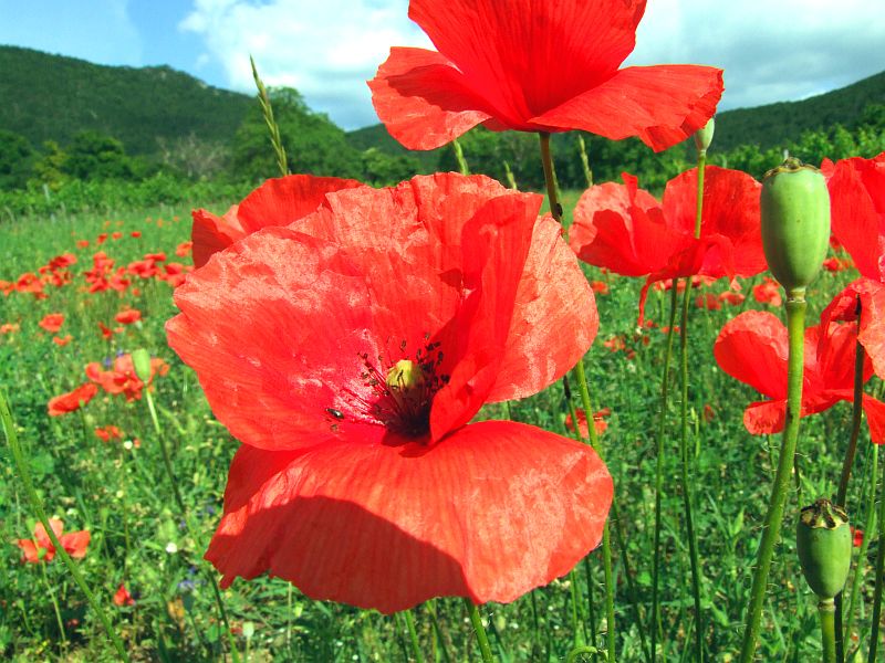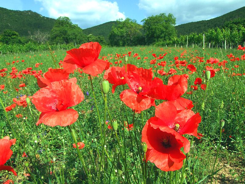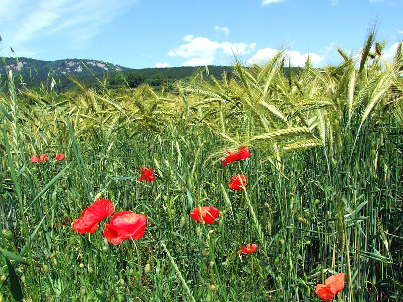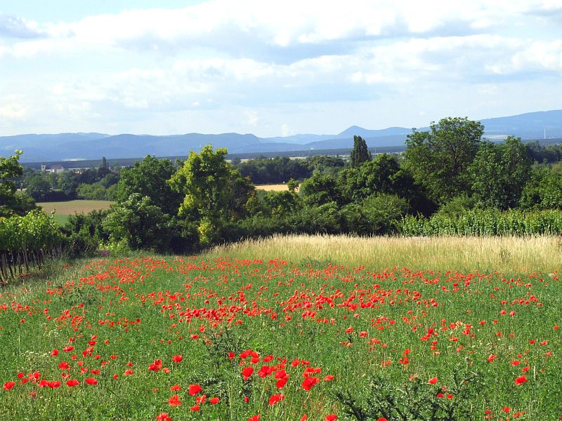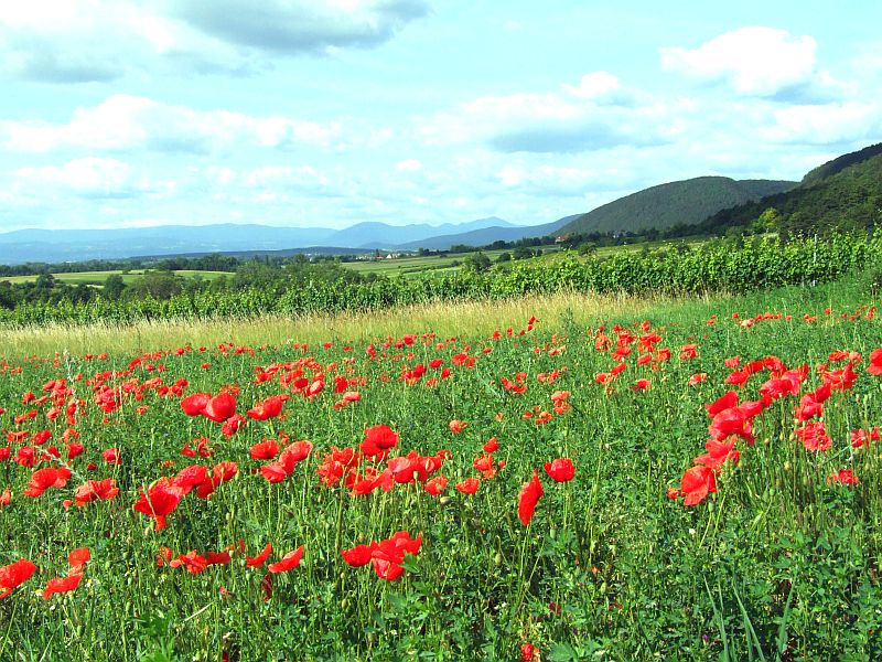 Zunächst geht es durch die Weinberge Richtung Bad Fischau - Brunn. Eine Brache mit hübschem Mohn.