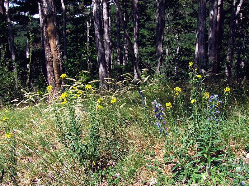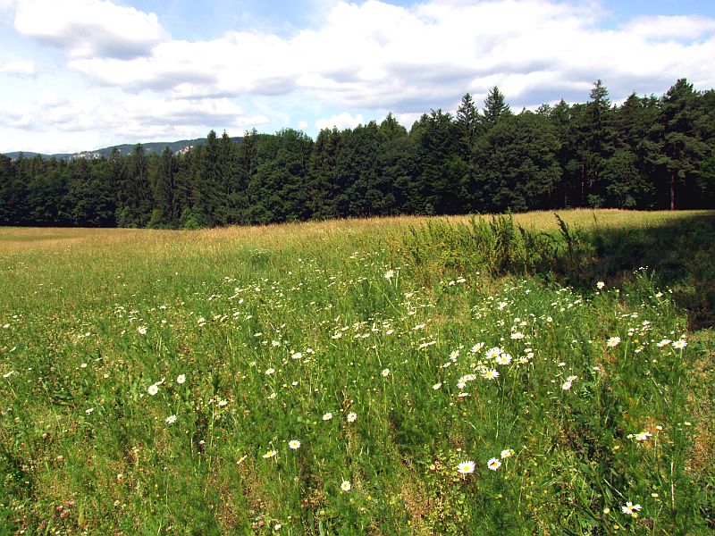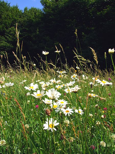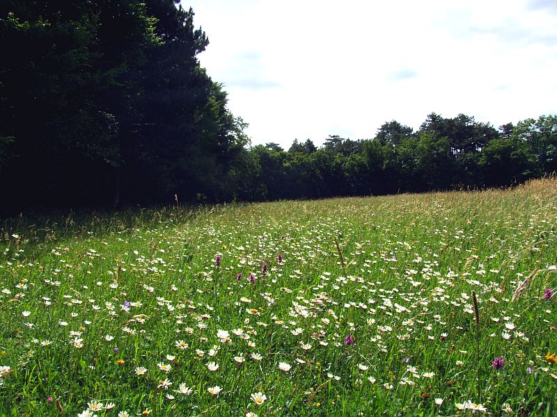 Ich habe nun den Kamm der Fischauer Berge überquert und wende mich in Richtung Neue Welt. Hier heroben, noch im Wald, eine wunderschöne Blumenwiese ...