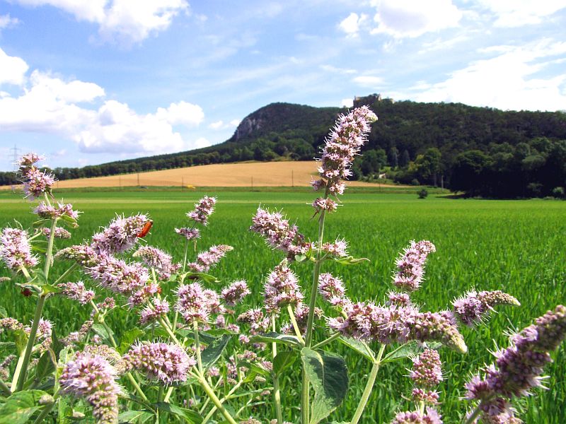 Rossminze (Mentha longifolia) hinter der Teichmühle, mit Blick auf die Ruine Emmerberg.